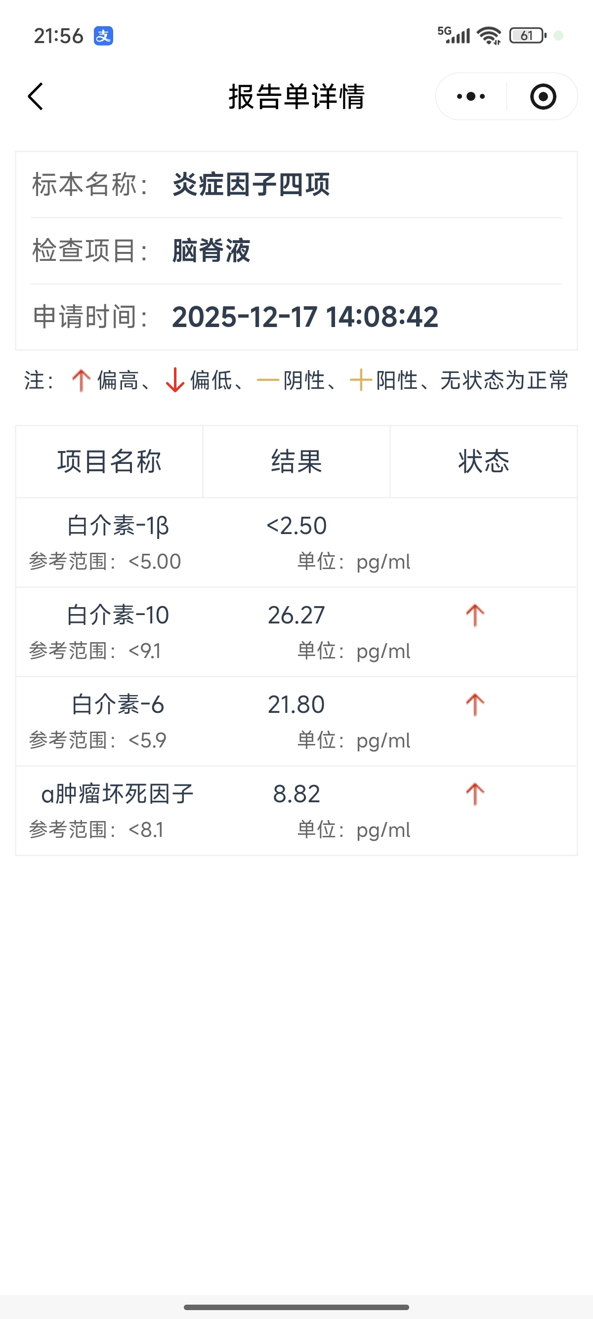 see。 发表于 2025-12-17 20:51 现在做不做核磁意义不大,不能确诊也不能否定,去做腰穿查脑脊液的细胞因子,查白介素10和6,另外可以做脑脊液的ctdna.看下有没有淋巴瘤的典型突变